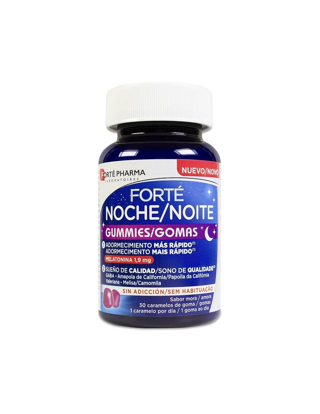 Advertencias:- Los complementos alimenticios no son sustitutivos de una dieta sana y equilibrada y un estilo de vida saludable.- No superar la dosis diaria recomendada.- Mantener fuera del alcance de los niños.Composición de Forte Noche Gummies, 30 Caramelos