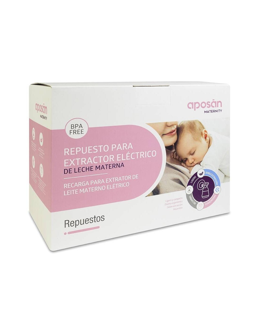 Es un repuesto para el extractor de leche materna eléctrico Aposan Maternity.