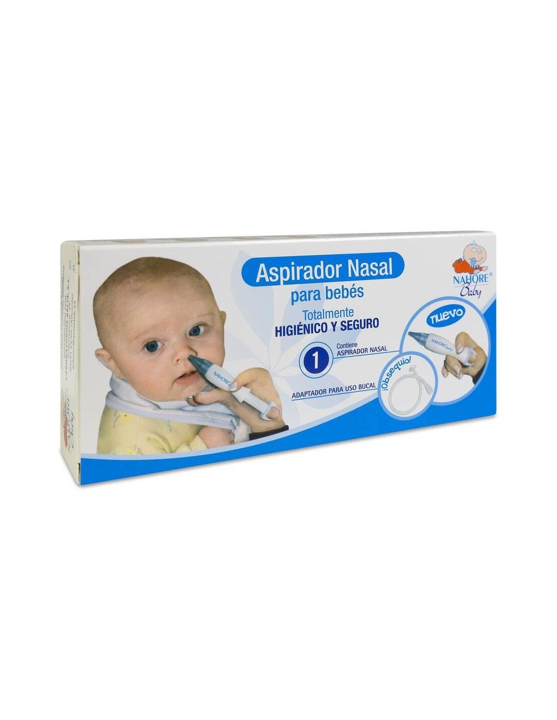Nahore Baby Aspirador Nasal es un dispositivo elaborado exclusivamente para aspirar los mocos de los bebés de forma sencilla y totalmente higiénica. Su avanzado diseño permite utilizar una sola cánula para limpiar ambas fosas nasales. Además, gracias a la válvula antirretorno que incorpora, es posible aspirar los mocos tantas veces como sea necesario sin tener que retirar la cánula de la nariz del bebé. De ese modo se consigue, en pocos segundos, la limpieza total de las fosas nasales del pequeño.
